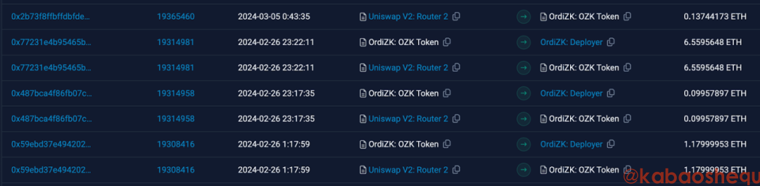 这次迁移的实质性后果是部署者地址开始囤积大量OZK代币。值得注意的是,这次迁移是OrdiZK项目上线后不久就宣布的,官方号称这次迁移是为了解决审计中发现的一个小错误。
