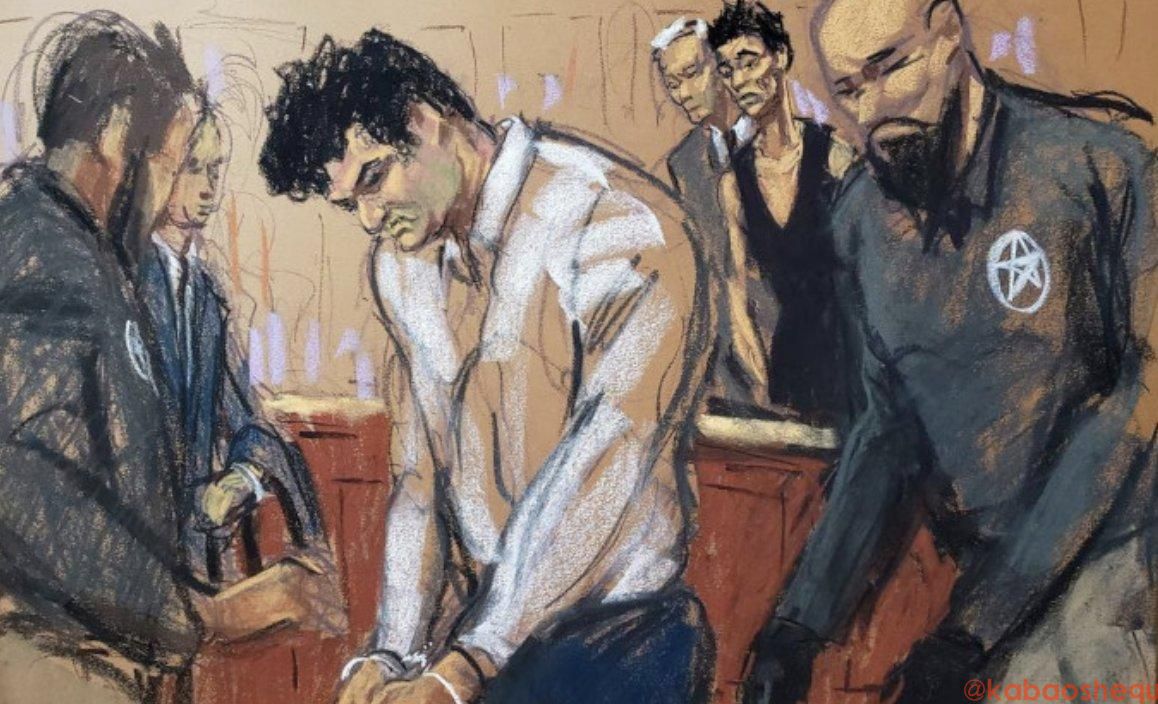 他们只让 20 个人进去旁听,所以凌晨 4 点,在天还没亮时我就到达了现场。唯一比我还早的人是一名《纽约时报》的记者,据传他是 SBF 父母关于此事观点的对外传话人。他也是我看到的唯一一位与 SBF 父母交谈的记者。