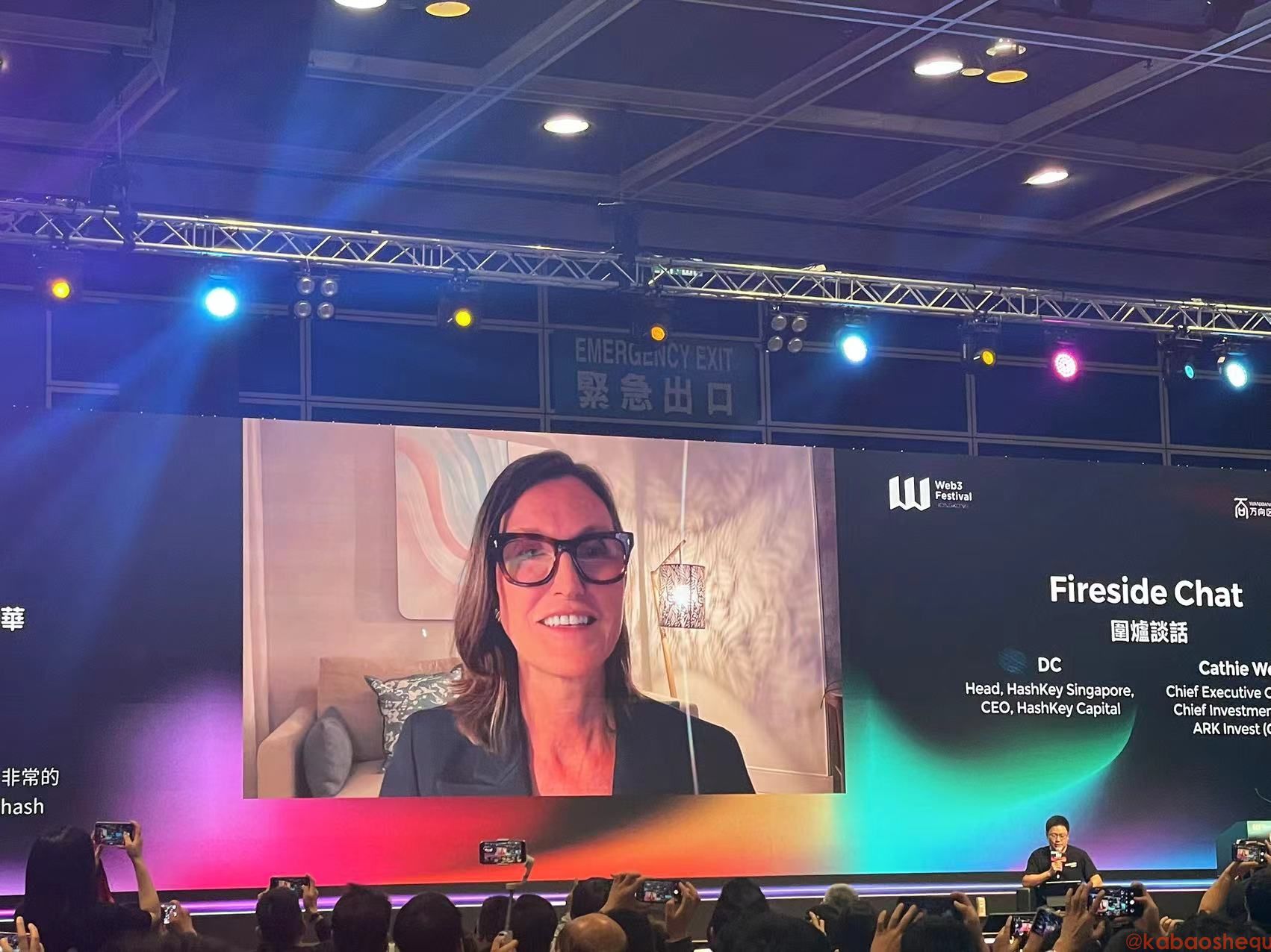 DC:各位早上好!(对于今天的圆桌对话)我感受到一点压力,但也非常开心非常兴奋,我来自 HashKey Capital,我们公司是 Web3 行业里一线的机构投资方,资产管理规模(AUM)超 10 亿美元,被投项目 500+,2015 年开始在新加坡正式展业。今天的圆桌我们邀请到了 Cathie Wood,她在投资领域有多年的经验,非常高兴她能加入我们。在深入讨论之前想先问一下 Cathie,您要不要跟大家问个好?