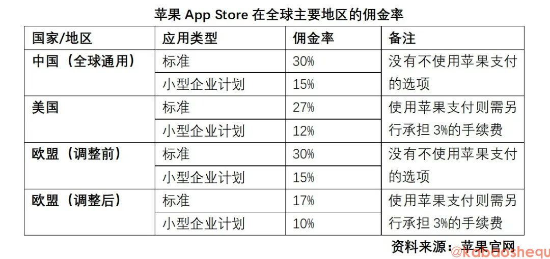 另一种更可行的选择,则是降低苹果中国区的佣金率。既可以是全方位的降低,也可以是面向某些类型、某些赛道应用的降低;既可以是渐进式的降低,也可以是一步到位的降低。即便中国区的"苹果税"不能在短期内降低到欧盟区的水平(标准17%、中小开发者10%),哪怕向这个目标靠近一步,也足以让数以万计的开发者受益匪浅,并且向整个互联网行业传递积极信号。这是苹果能够做到、也应该做到的。