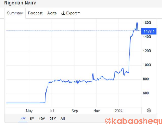 近一年来美元兑奈拉不断走高,来源:第一财经